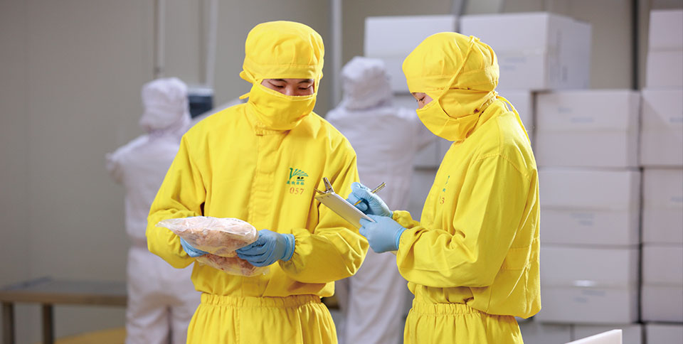 每批次原料必經驗收 原料生產過程完全殺菌防疫 原料成品包裝后金屬探測 每批次成品出廠檢測